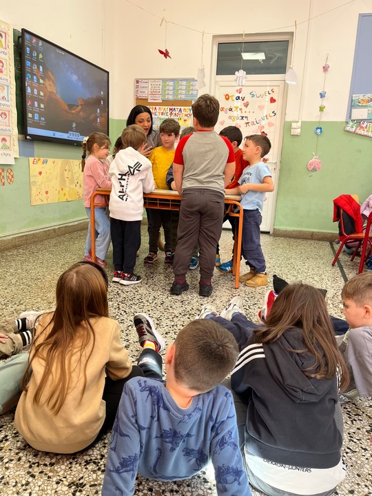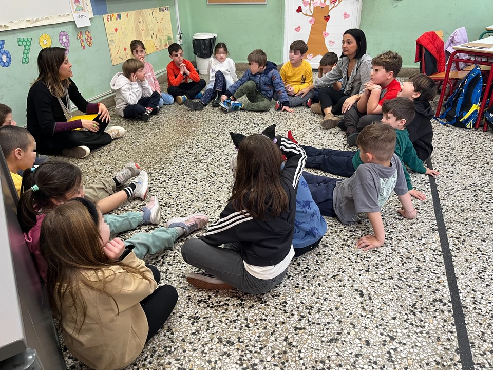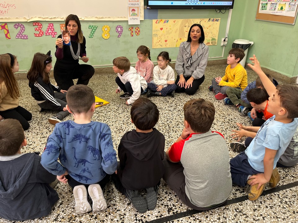 Το βιωματικό εργαστήρι με τίτλο “Ο κύκλος που ανοίγει” υλοποιήθηκε από τις ψυχολόγους του Δρυμπέτειου Πολυιατρείου του Δήμου Κηφισιάς κα Αθανασία Κακάρογλου και κα Δάφνη Τατιάνα Παπανικολάου, ύστερα από πρόσκληση της Διευθύντριας και της εκπαιδευτικού της Α’ τάξης στο πλαίσιο δράσεων για την Πανελλήνια Ημέρα κατά της Σχολικής Βίας.