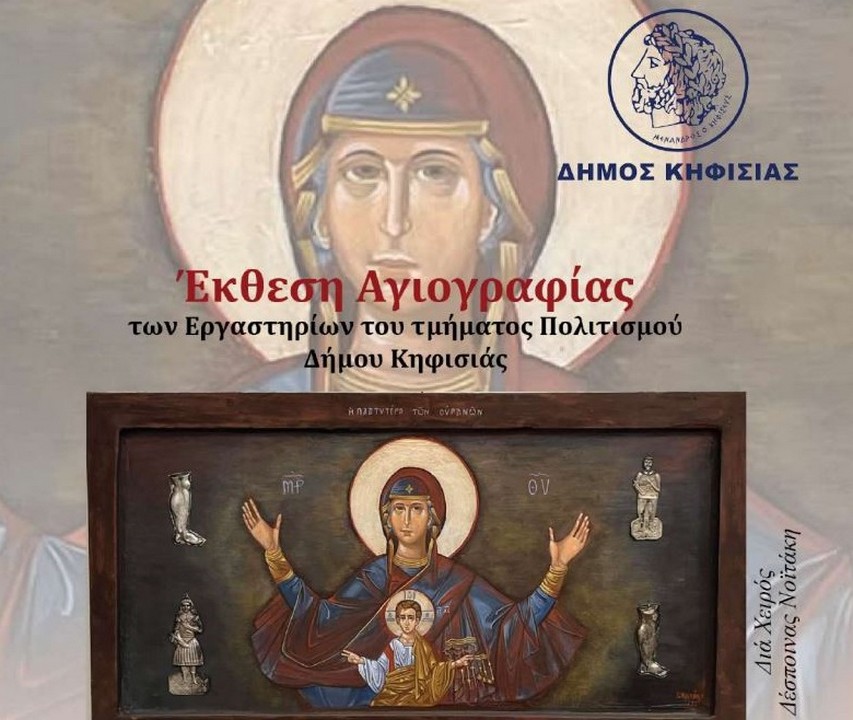 Ο Δήμαρχος Κηφισιάς Βασίλης Ι. Ξυπολυτάς, ο Αντιδήμαρχος Πολιτισμού Χρήστος Καλός και το Εργαστήρι Αγιογραφίας σας προσκαλούν στην Έκθεση Αγιογραφίας των Εργαστηρίων του Τμήματος Πολιτισμού του Δήμου Κηφισιάς, που θα πραγματοποιηθεί το σαββατοκύριακο 18-19 Απριλίου 2026 στην ΕΠΑΥΛΗ «ΔΡΟΣΙΝΗ» (Αγ. Θεοδώρων & Δ. Κυριακού).