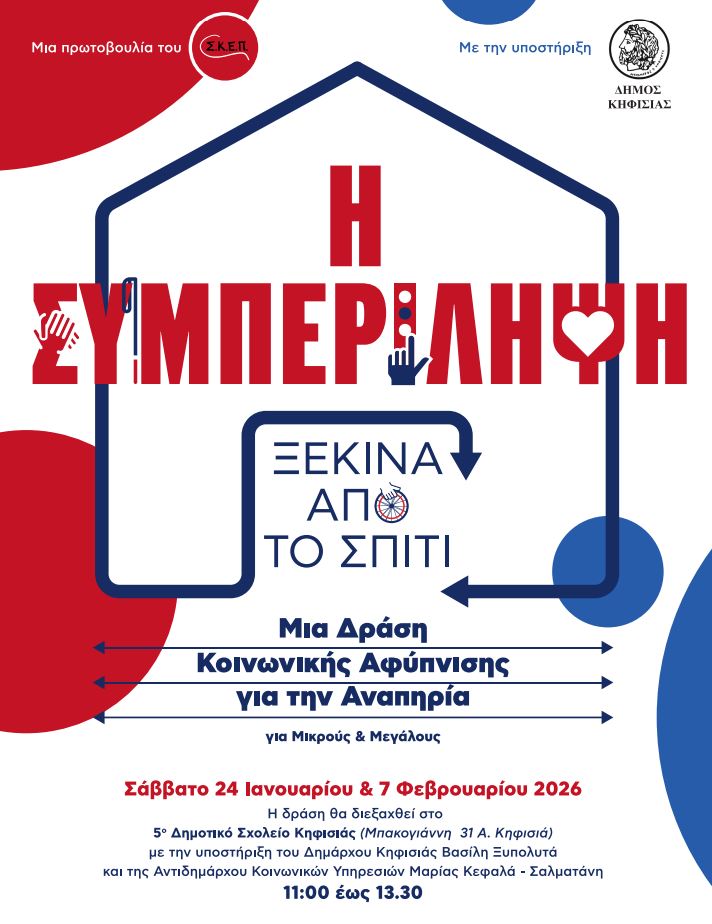 Το πιλοτικό πρόγραμμα του Συνδέσμου Κοινωνικής Ευθύνης για Παιδιά και Νέους (Σ.Κ.Ε.Π.), σε συνεργασία με τον Δήμο Κηφισιάς, μας προσκαλεί σε ένα διαδραστικό ταξίδι κοινωνικής αφύπνισης για την αναπηρία — με στόχο να μπορούμε, ως γονείς και εκπαιδευτικοί, να καλλιεργήσουμε τη συμπερίληψη από τα πρώτα χρόνια ζωής.