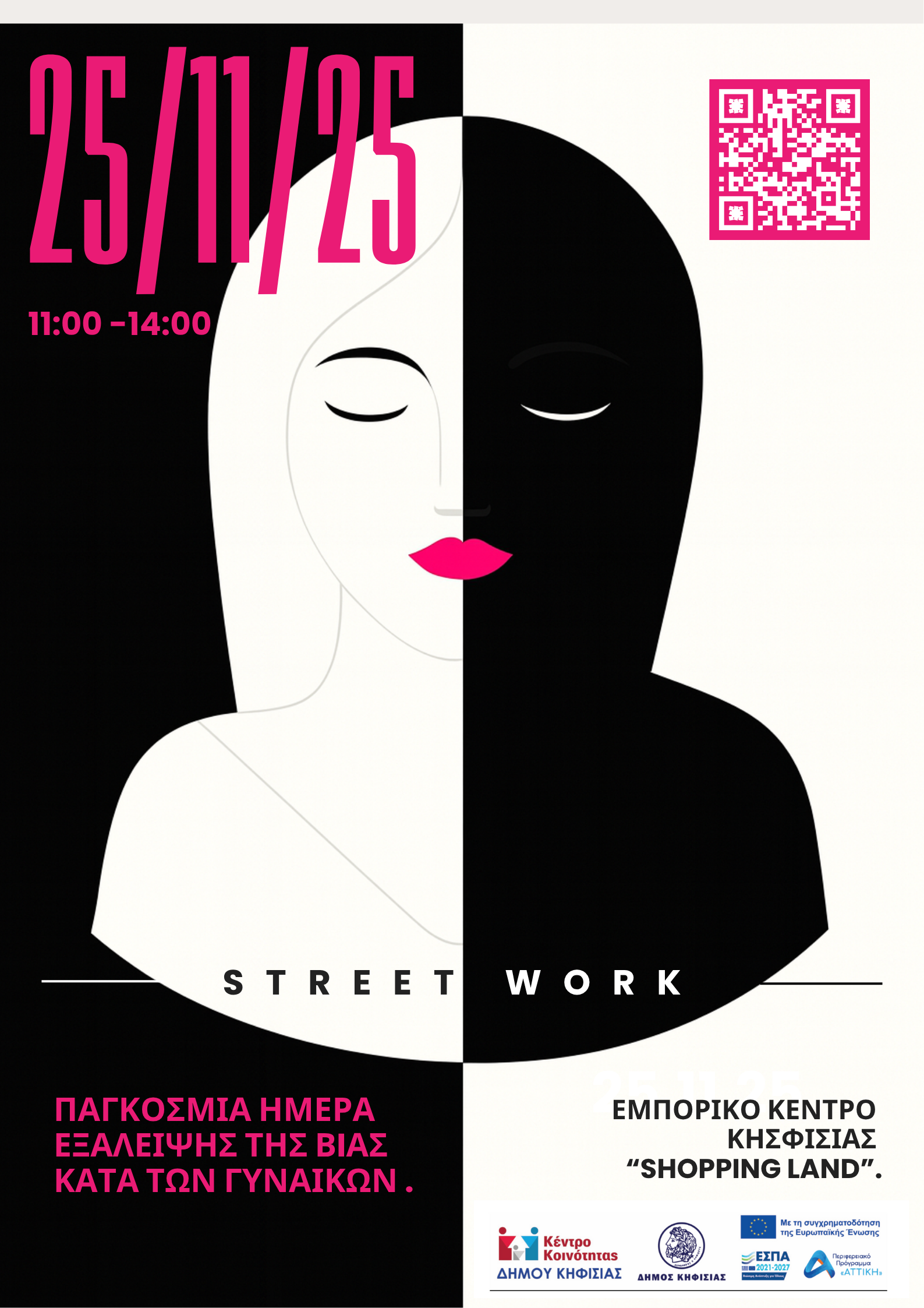 Με αφορμή την Παγκόσμια Ημέρα για την Εξάλειψη της Βίας κατά των Γυναικών, στις 25 Νοεμβρίου 2025, το Κέντρο Κοινότητας του Δήμου Κηφισιάς πραγματοποιεί δράση streetwork στη Shopping Land Κηφισιάς, από τις 11:00 έως τις 14:00.