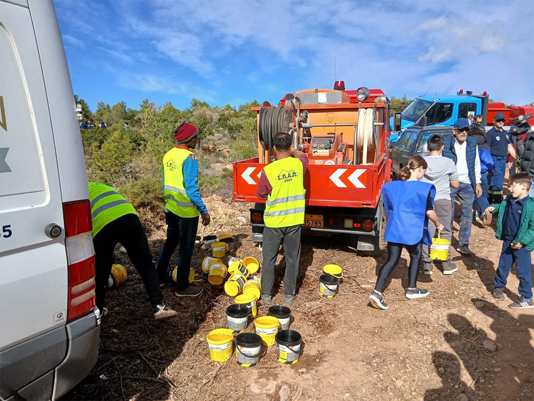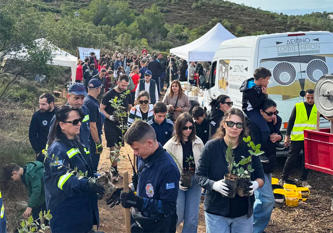 Στη δράση συμμετείχαν πλήθος κόσμου, οικογένειες με μικρά παιδιά, εθελοντές, σχολεία, εθελοντικές ομάδες και εταιρείες και όλοι μαζί κατάφεραν να φυτεύσουν 1.000 πλατύφυλλα και βραδύκαυστα δέντρα.