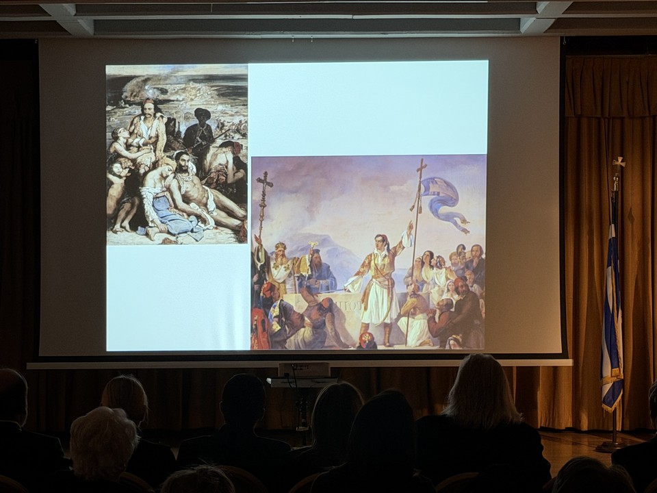 Με αφορμή τα 12 έργα της αντιπροσωπευτικής έκθεσης για τους Ήρωες και τα Σύμβολα του ’21 μέσω της φιλελληνικής τέχνης, ο Έφορος της Συλλογής Έργων Τέχνης της Βουλής των Ελλήνων, κ. Θοδωρής Κουτσογιάννης με την εξαιρετική του ομιλία και παρουσίαση «ταξίδεψε» εικονικά το κοινό στην εποχή της Ελληνικής Επανάστασης και το κλίμα του Αγώνα, αναδεικνύοντας τον φιλελληνισμό ως κεφαλαιώδες και συμπληρωματικό στοιχείο του Αγώνα για την Ελευθερία.
