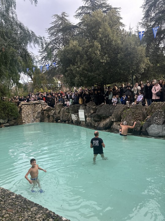 Εκεί πραγματοποιήθηκε η τελετή καθαγιασμού των υδάτων ο πανοσιολογιώτατος Κωνσταντίνος Χαραλαμπόπουλος, πλαισιούμενος από τους αιδιεσιμολογιώτατους, πατήρ Παναγιώτη Σβορώνου (συνεφημέριο του Ι. Ν. Μεταμορφώσεως του Σωτήρος Κηφισιάς) και πατήρ Χρήστου Λυμπερόπουλου (του Ι. Ν. Αγίας Άννας Κηφισιάς), έριξαν τον Σταυρό στα νερά της λίμνης. Μεταξύ άλλων ατόμων που βούτηξαν, υπό το θερμό χειροκρότημα των παρευρισκομένων, ο  μικρός Κωνσταντίνος έπιασε το Σταυρό και μέσα σε κλίμα συγκίνησης μαζί με την ευλογία πήρε και τις ευχές όλων.