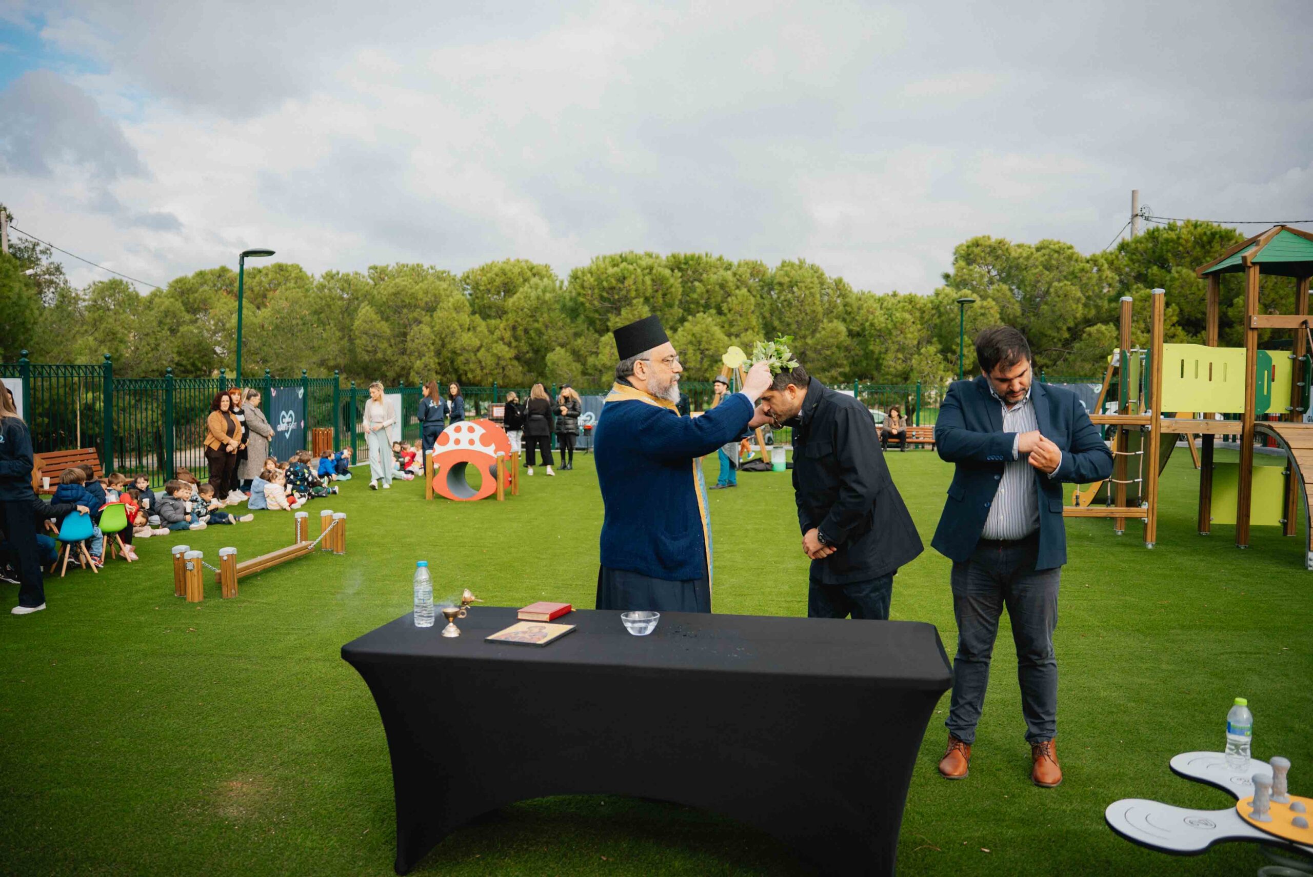Νωρίτερα ο πατέρας Γεώργιος Κωστής του γειτονικού Ιερού Ναού Αγίας Ματρώνας, τέλεσε τον αγιασμό και ακολούθησε το καθιερωμένο κόψιμο κορδέλας στην είσοδο της νέας παιδικής χαράς από τον Δήμαρχο Κηφισιάς, τον εκπρόσωπο της Novibet, την Αντιπεριφερειάρχη, αιρετούς και φυσικά πολλά παιδιά, που μαζί με εκπροσώπους συλλόγων και δημότες έδωσαν το παρών στα εγκαίνια.