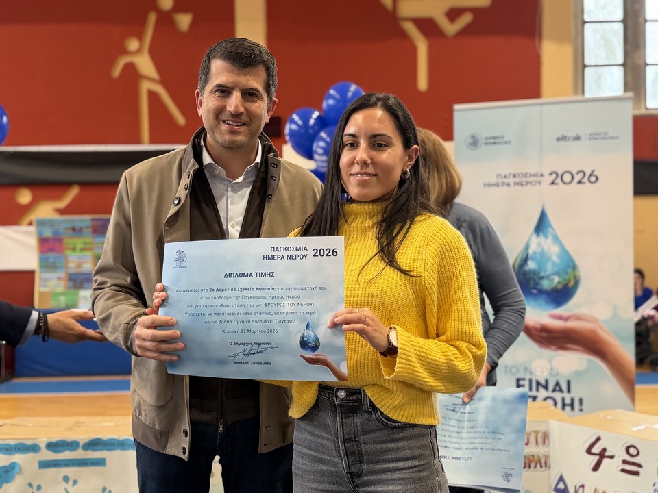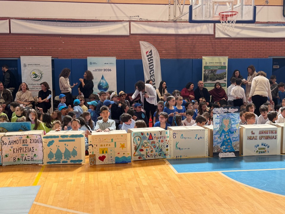 Με μεγάλη επιτυχία και αθρόα συμμετοχή πραγματοποιήθηκε την Κυριακή 22 Μαρτίου 2026 στο Κλειστό Γυμναστήριο Δημ. Βικέλας του 8ου Δημοτικού Σχολείου Κηφισιάς η εκδήλωση του Δήμου Κηφισιάς για την Παγκόσμια Ημέρα Νερού σε μια ημέρα γεμάτη έμπνευση, δημιουργία και δυνατά μηνύματα από τα παιδιά για την αξία και την προστασία του νερού.
