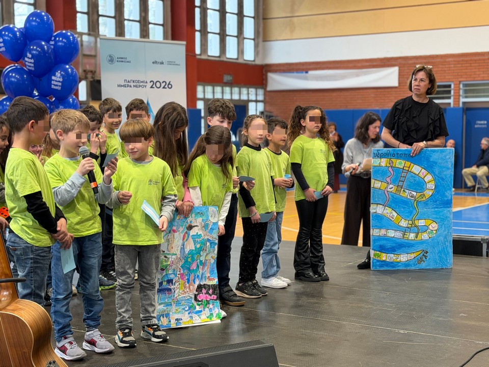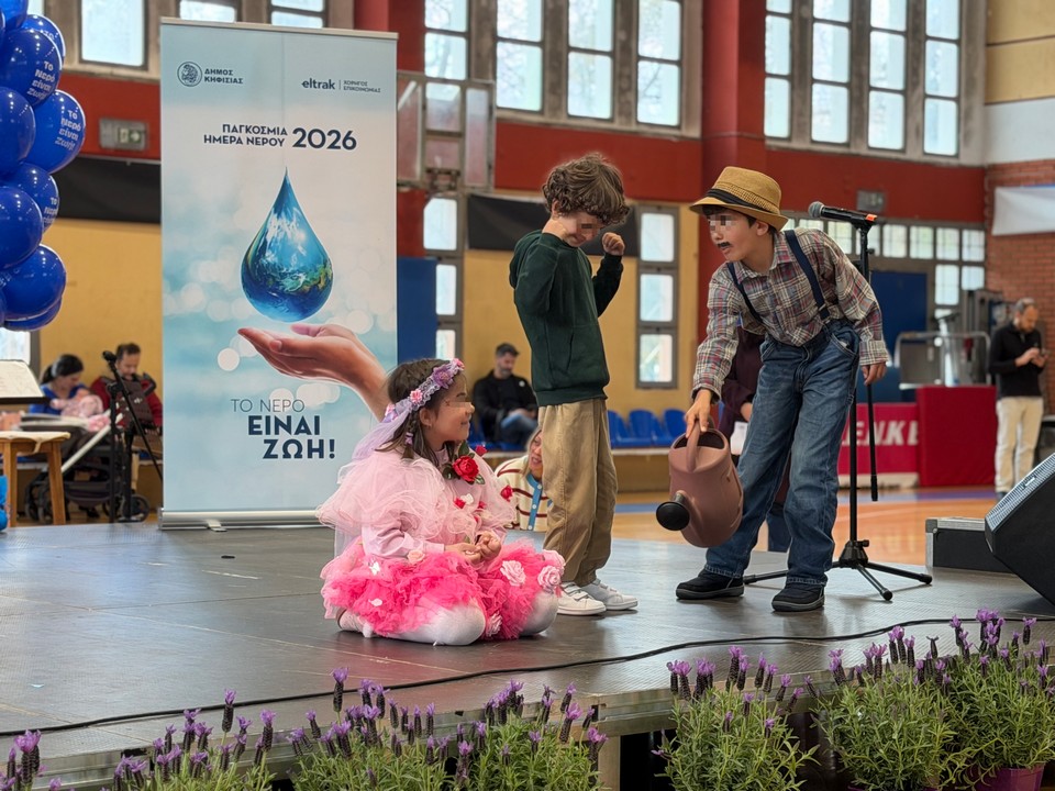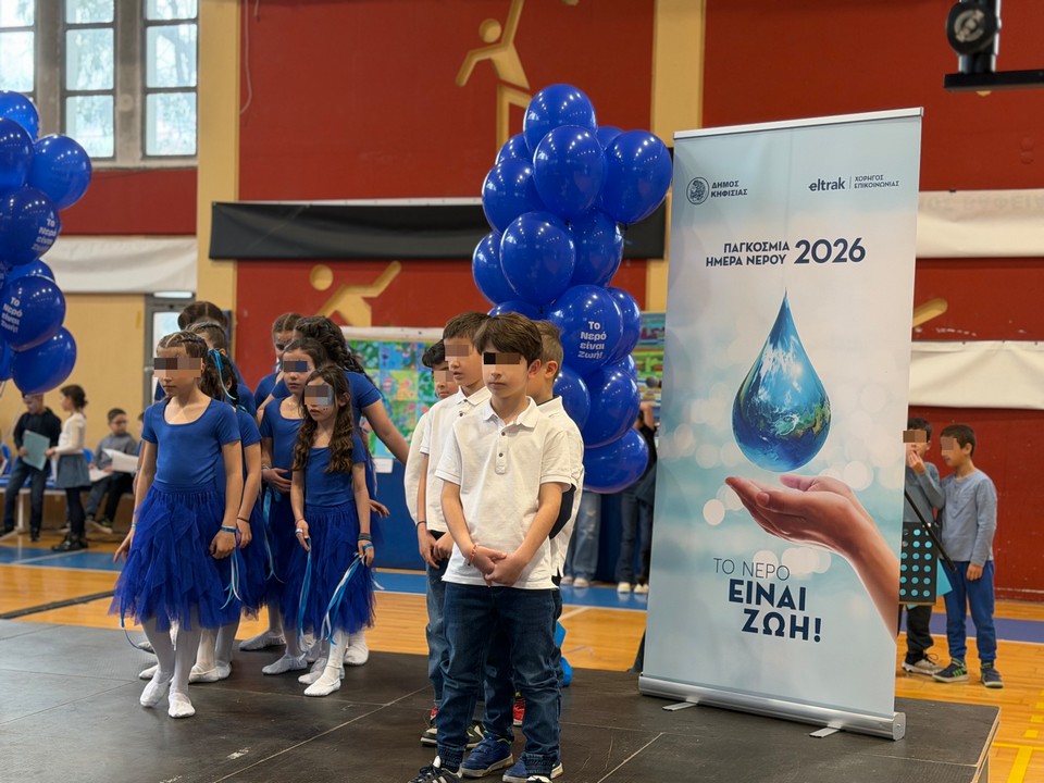 Με μεγάλη επιτυχία και αθρόα συμμετοχή πραγματοποιήθηκε την Κυριακή 22 Μαρτίου 2026 στο Κλειστό Γυμναστήριο Δημ. Βικέλας του 8ου Δημοτικού Σχολείου Κηφισιάς η εκδήλωση του Δήμου Κηφισιάς για την Παγκόσμια Ημέρα Νερού σε μια ημέρα γεμάτη έμπνευση, δημιουργία και δυνατά μηνύματα από τα παιδιά για την αξία και την προστασία του νερού.