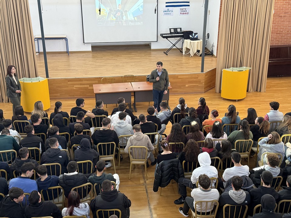 Υπογράμμισε τη σημασία της δωρεάν εφαρμογής “SAFE. YOUth”, ως ένα σύγχρονο, ψηφιακό εργαλείο πρόληψης και άμεσης υποστήριξης και μιας πολύτιμης εφαρμογής που απευθύνεται, σε τρεις ηλικιακές ομάδες (12-14, 15-18, 18+) παρέχοντας τη δυνατότητα ταχύτερης ειδοποίησης και παρέμβασης σε περιπτώσεις κινδύνου. Κλείνοντας την ομιλία του ο κ. Ξυπολυτάς κάλεσε όλους τους μαθητές και τις μαθήτριες να «κατεβάσουν» την εφαρμογή στα κινητά τους, ακόμη και αν δεν βρεθούν ποτέ σε κάποια έκτακτη ανάγκη, για να τη χρησιμοποιήσουν.