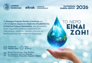 Ο Δήμαρχος Κηφισιάς Βασίλης Ξυπολυτάς και ο Εντεταλμένος Δημοτικός Σύμβουλος Περιβάλλοντος & Πρασίνου Γιώργος Κασναφέρης, σας προσκαλούν σε μια ξεχωριστή εκδήλωση αφιερωμένη στο πολυτιμότερο αγαθό του πλανήτη, μέσα από τη … Συνεχίστε να διαβάζετε το Πρόσκληση για τον Εορτασμό της Παγκόσμιας Ημέρας Νερού, 22 Μαρτίου στο Κλειστό Γυμναστήριο “Δημ. Βικέλας” 8ου Δημοτικού Σχολείου Κηφισιάς.