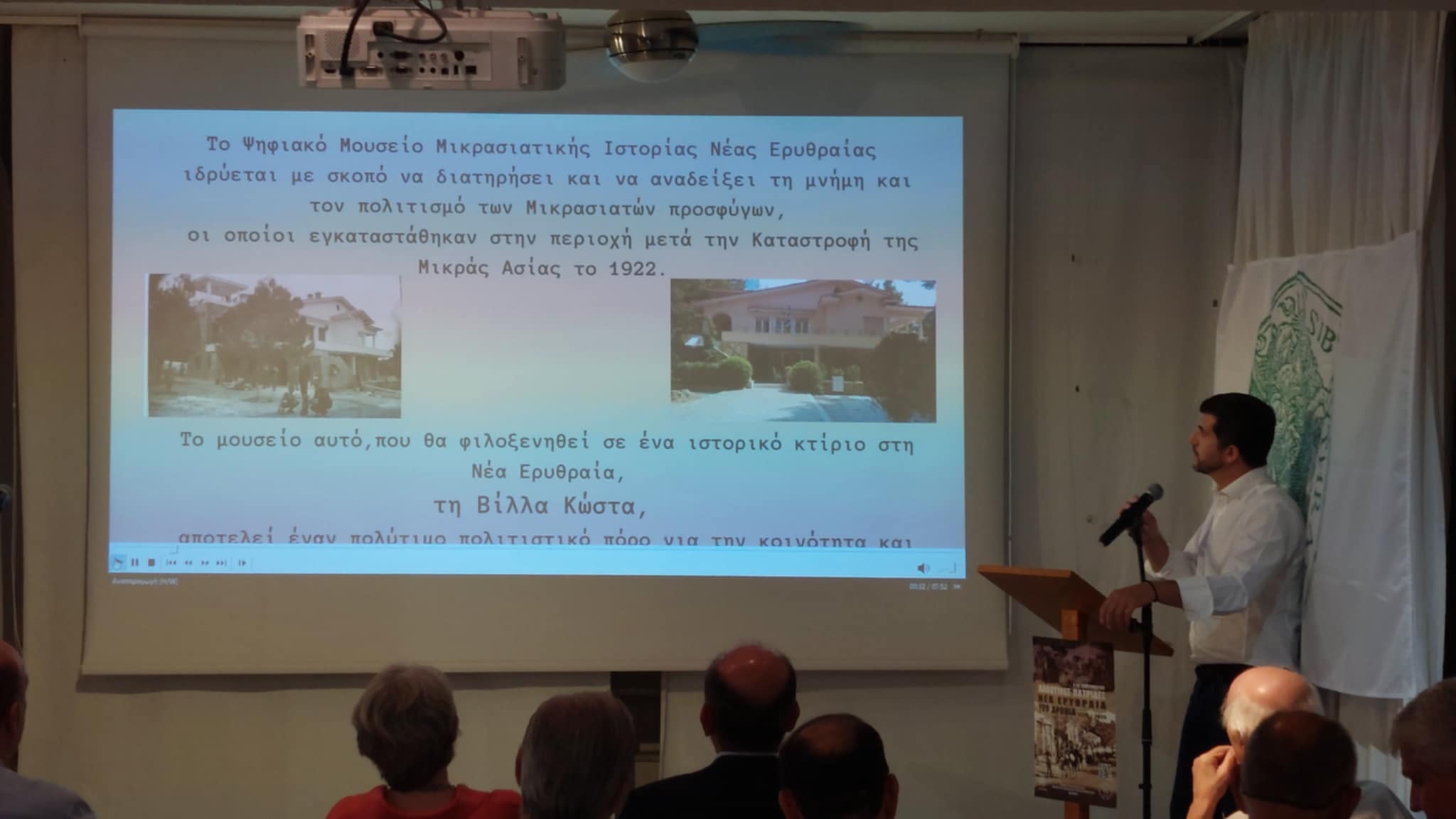 Στην κατάμεστη αίθουσα της Βίλλας Κώστα ο Δήμαρχος Κηφισιάς τόνισε πως «σήμερα ξεκινάει ένα ταξίδι στο όνειρο, ένα ταξίδι στην ιστορία. Φέτος έχουμε την επέτειο των 100 χρόνων από την ίδρυση της κοινότητας της Νέας Ερυθραίας. Και δεν θα μπορούσαμε να κάνουμε οτιδήποτε λιγότερο από το να φτιάξουμε ένα μουσείο, ένα σημείο αναφοράς της ιστορίας της Μικράς Ασίας, της Ερυθραίας, αλλά με έναν σύγχρονο τρόπο, με έναν ψηφιακό τρόπο» καθώς όπως εξήγησε ο κ. Ξυπολυτάς η «η ανάγκη να περνάει ο “πυρσός” της γνώσης, της μνήμης, στις νέες γενιές μπορεί να γίνει τώρα μόνο ψηφιακά, καθώς τα νέα παιδιά κινούνται στον ψηφιακό κόσμο, κινούνται στην εικόνα».