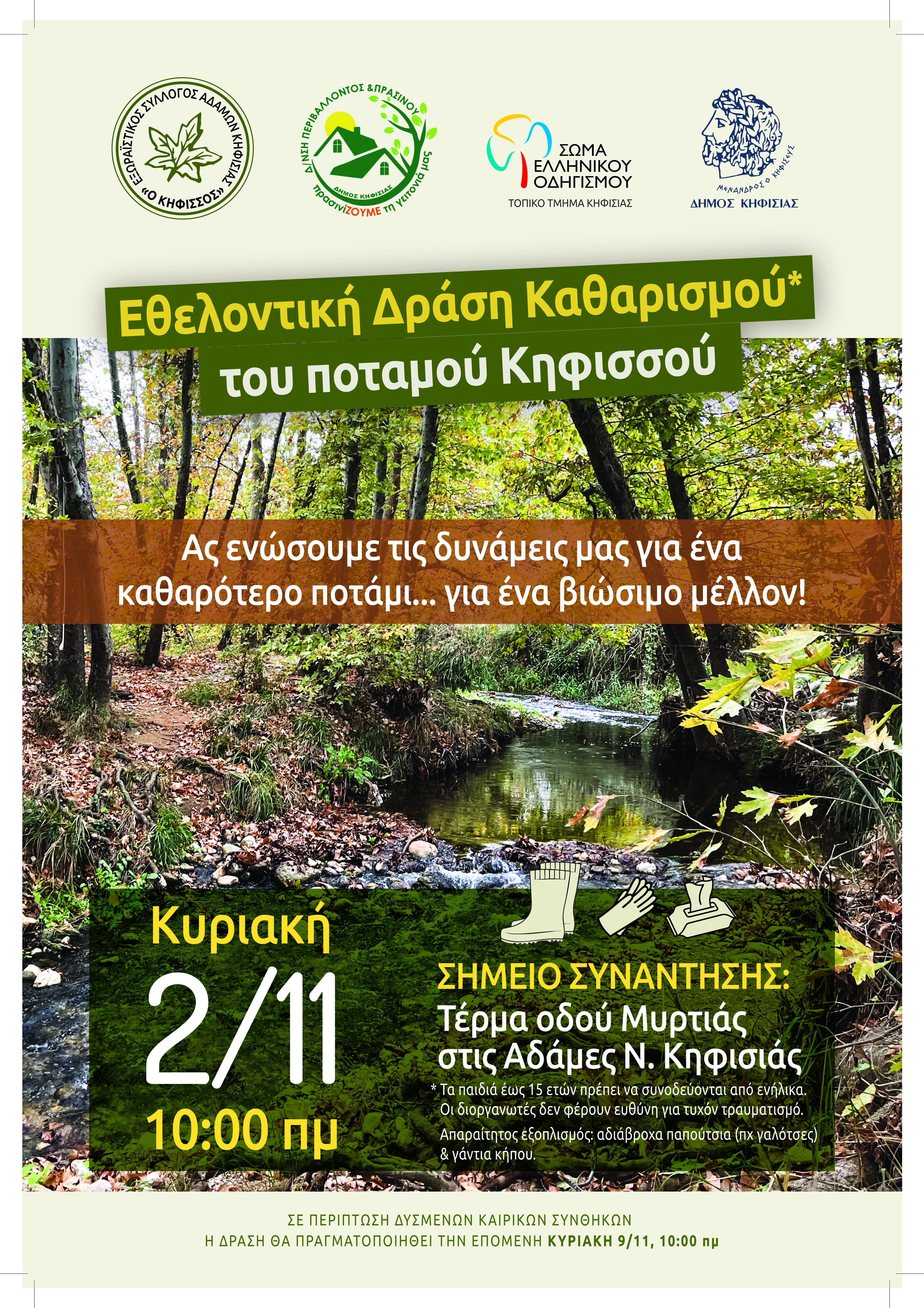 Σε περίπτωση δυσμενών καιρικών συνθηκών η δράση θα πραγματοποιηθεί την Κυριακή 9/11 στις 10 π.μ.
