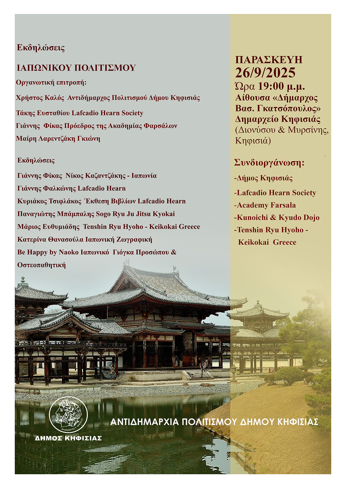 Στο πλαίσιο των εκδηλώσεων το Πολιτιστικό Κέντρο Δήμου Κηφισίας συνδιοργανώνει εκδηλώσεις για τον Ιαπωνικό Πολιτισμό.