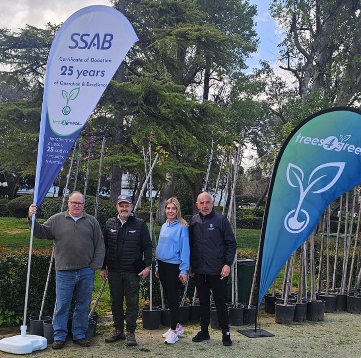 Με ιδιαίτερη χαρά υλοποιήθηκε η δωρεά 50 δέντρων (κουτσουπιές και βραχυχίτωνες) από την εταιρεία SSAB Χάλυβας Σουηδίας ΜΕΠΕ, με πρωτοβουλία του κ. Ιωάννη Παπίτση, στο πλαίσιο του εορτασμού των 25 χρόνων λειτουργίας της εταιρείας στην Ελλάδα, σε συνεργασία με την ΑΜΚΕ Trees4Greece.